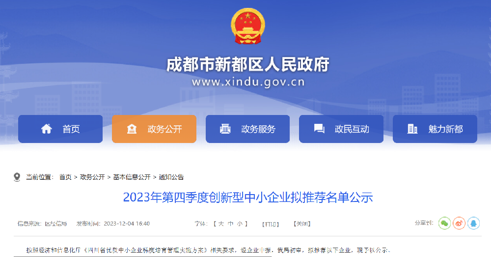 近日,四川省經濟和信息化廳公布了2024年專精特新中小企業名單,四川艾能捷科技有限公司(Sichuan Energy Technology Co., Ltd.)憑借其卓越的技術實力和專業化發展優勢,榮獲四川省“專精特新”中小企業稱號。這一成就體現了艾能捷(ENERGY)公司在技術創新和專業服務方面的卓越表現,也符合“...